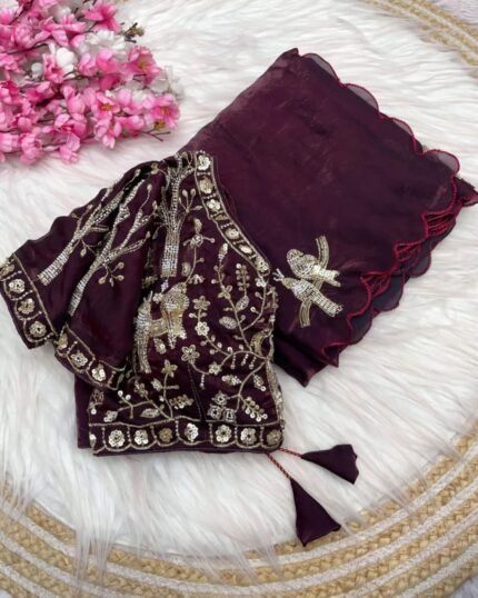 🕊️ Velvet Birdsong Saree