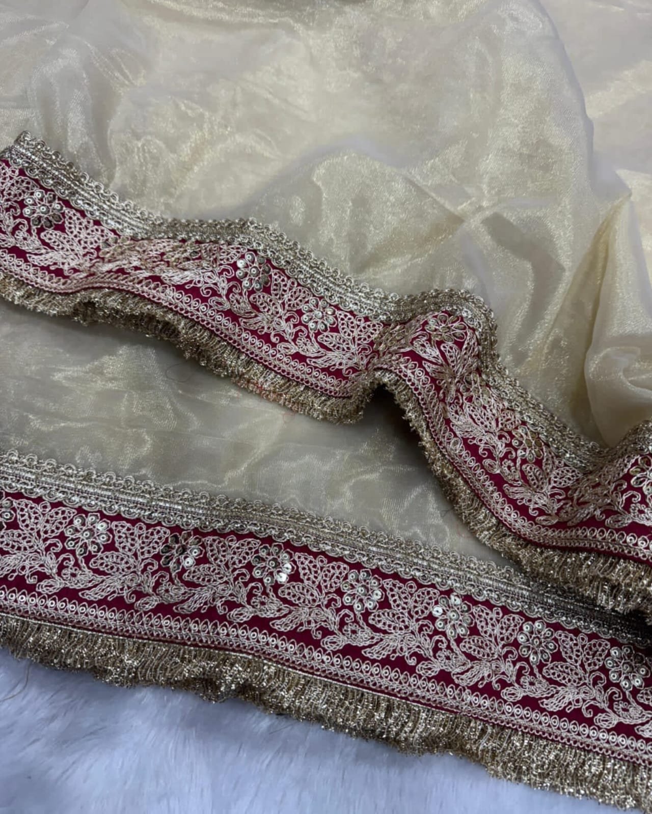 Work: Sequins & Dori Embroidery with Fancy Lace Border