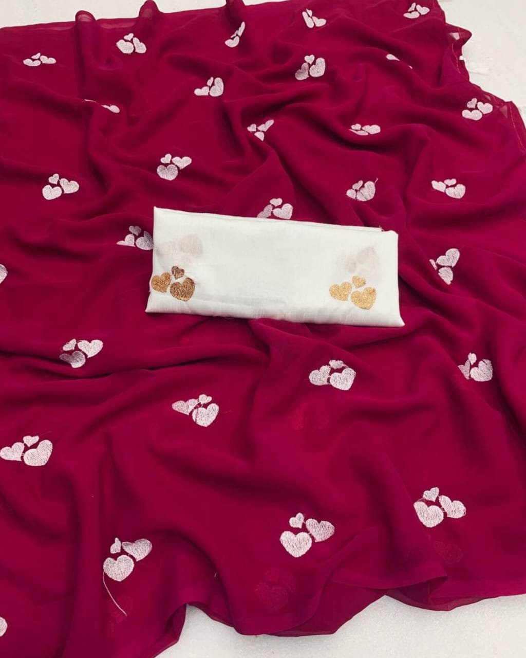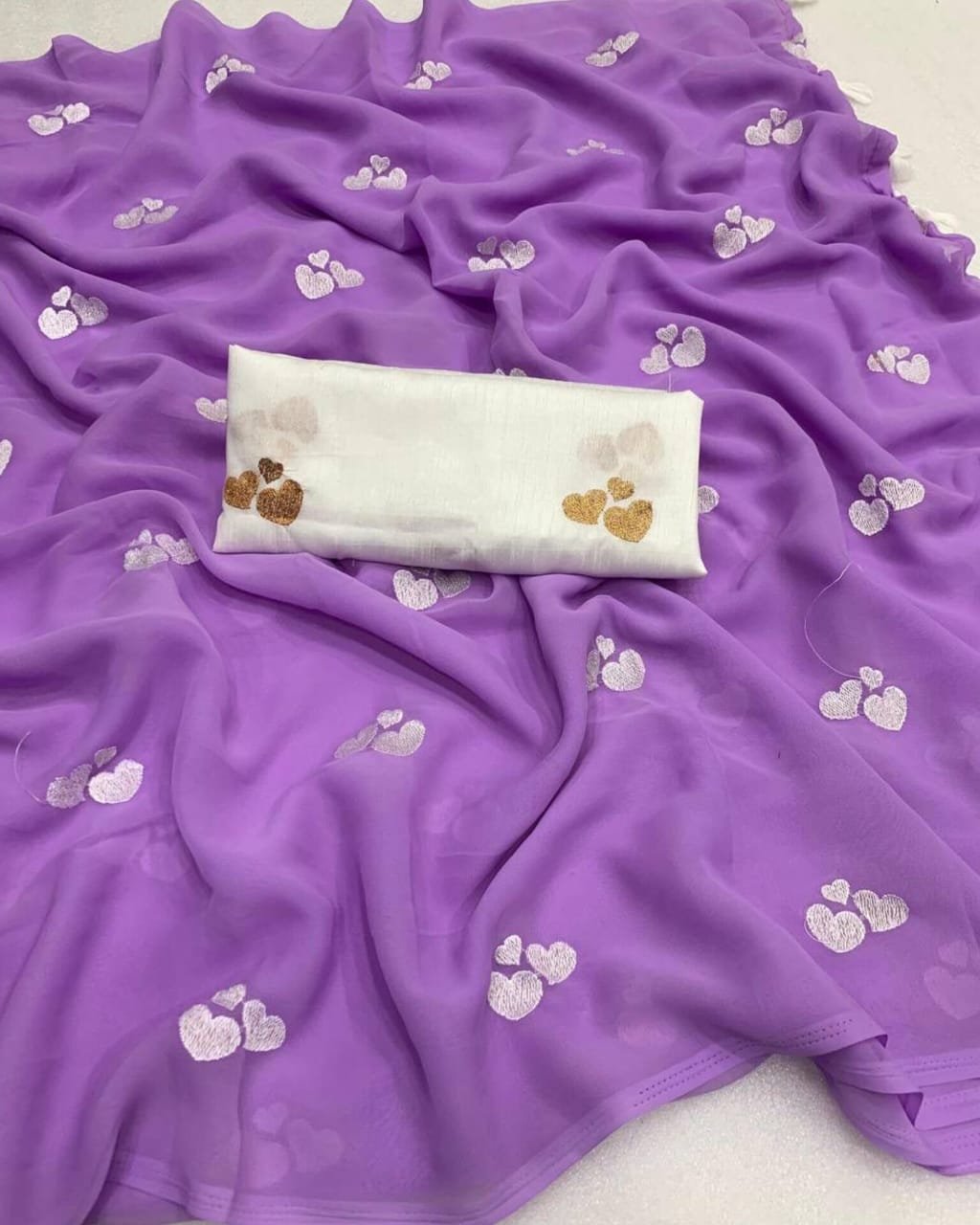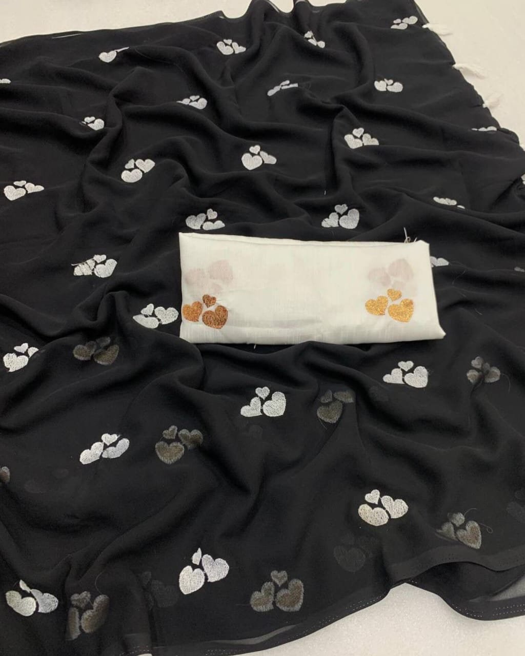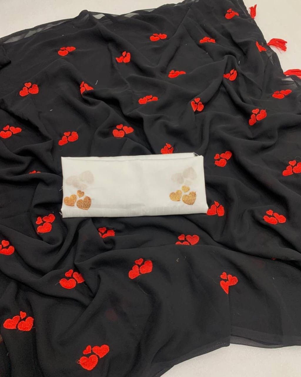 ✨ Elegant Georgette Saree with Heart Embroidery Work ✨