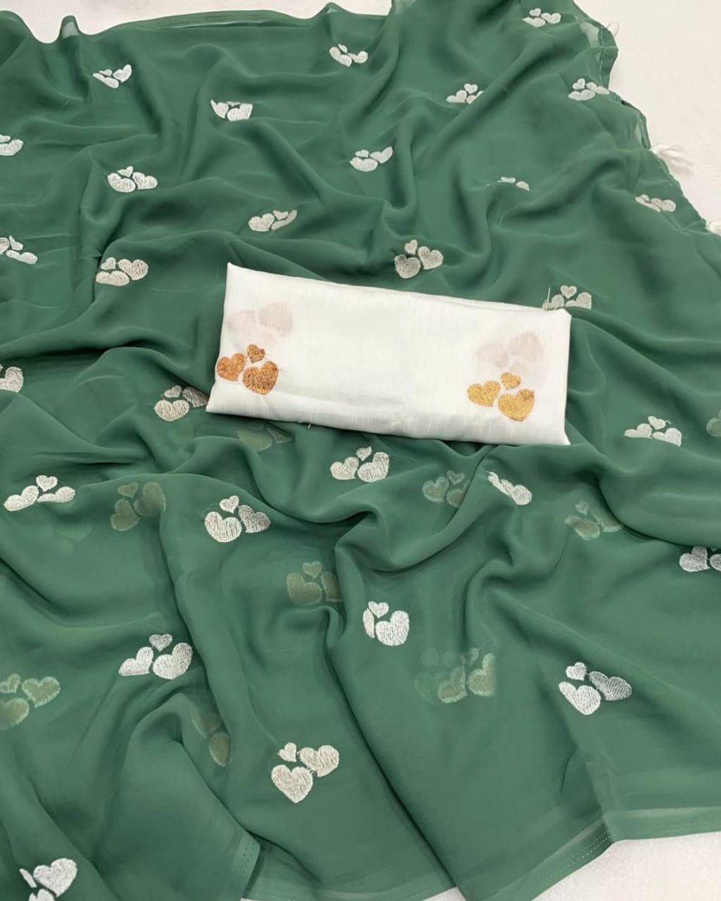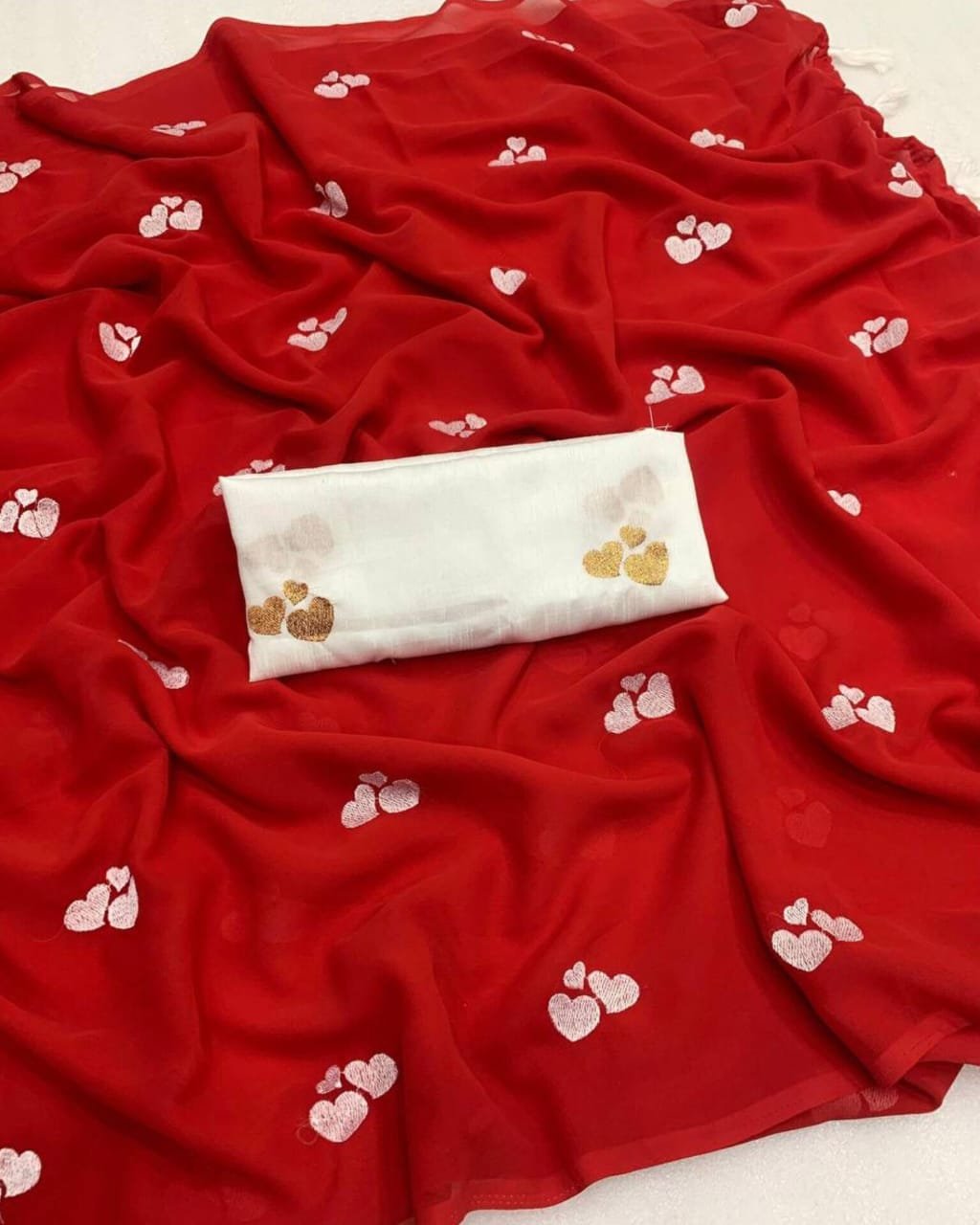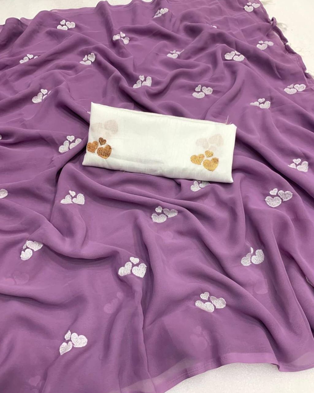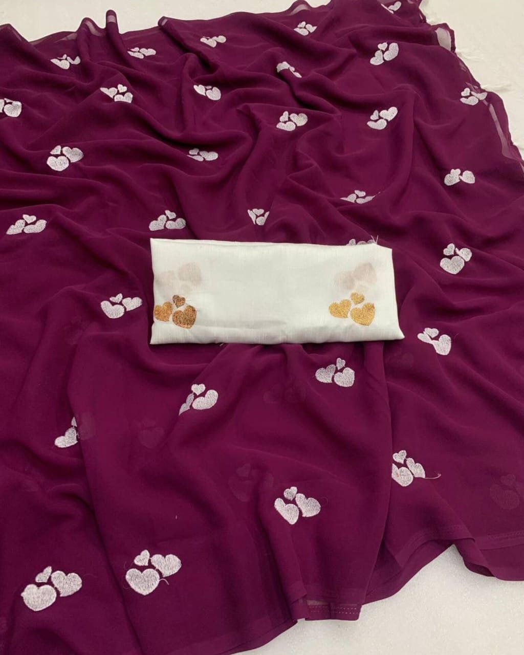 ✨ Elegant Georgette Saree with Heart Embroidery Work ✨