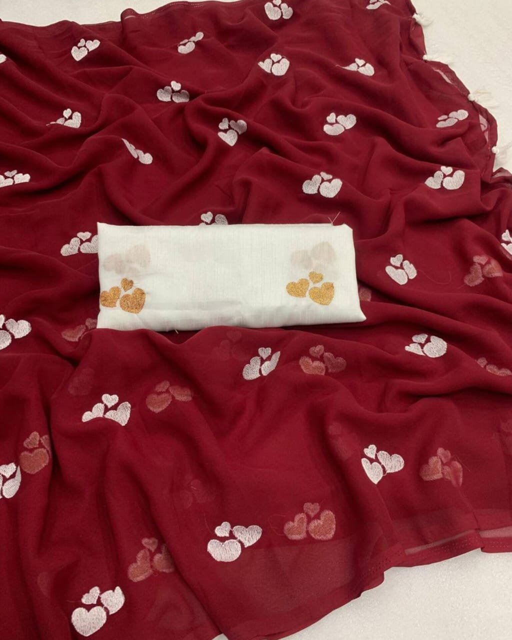 Home Saree ✨ Elegant Georgette Saree with Heart Embroidery Work ✨
