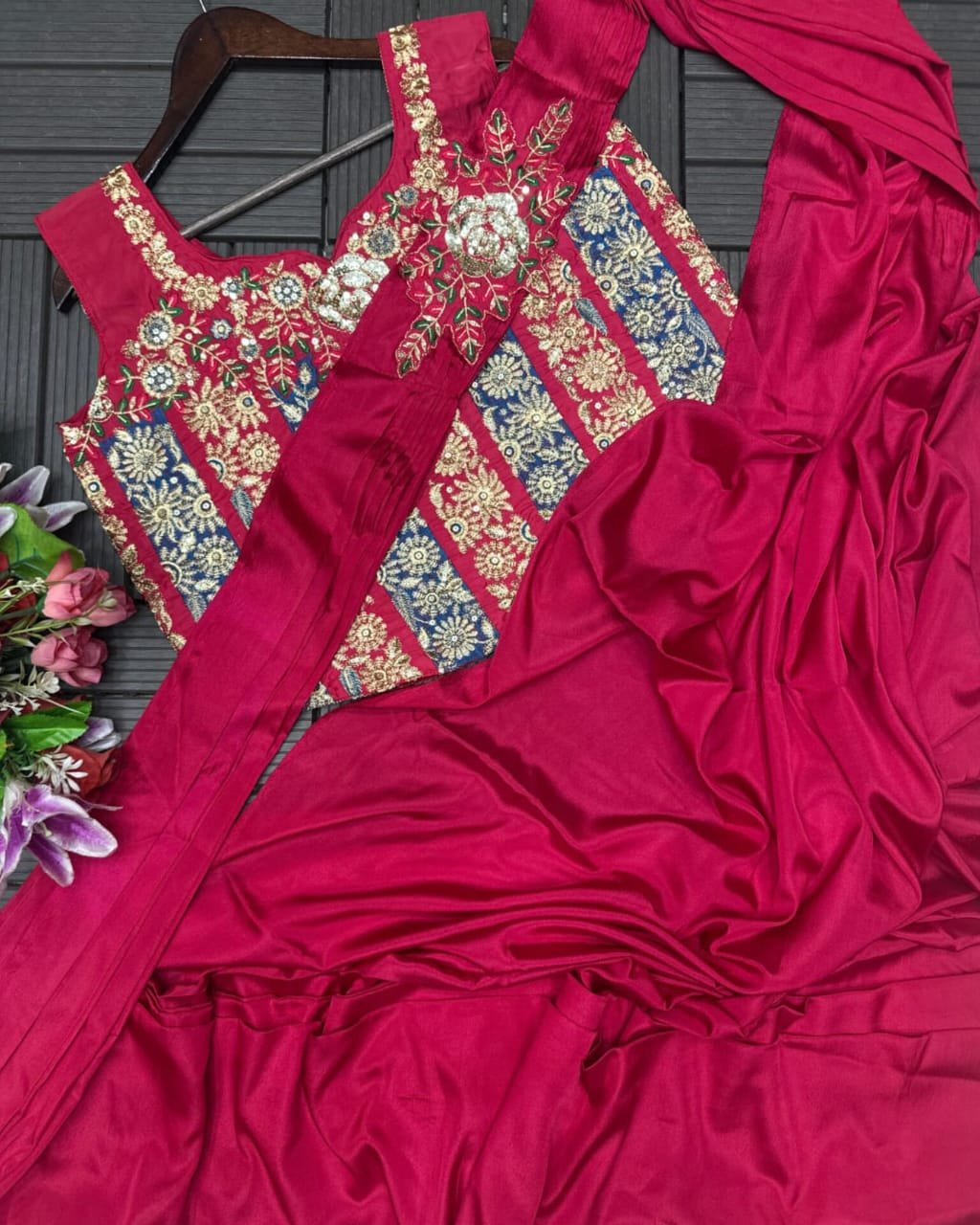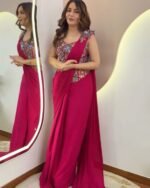 A super-trending drape-style saree featuring rich embroidery sequence work and a beautifully crafted blouse—perfect for effortless festive and party looks.