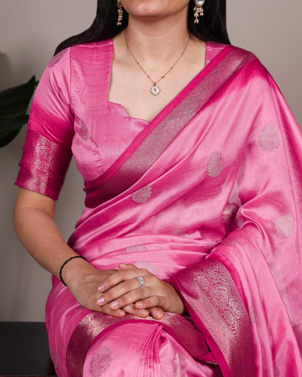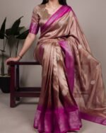 Timeless elegance meets modern charm! This stunning Rumali Silk saree brings together a luxurious shine with traditional zari craftsmanship — perfect for weddings, festive occasions & grand celebrations.