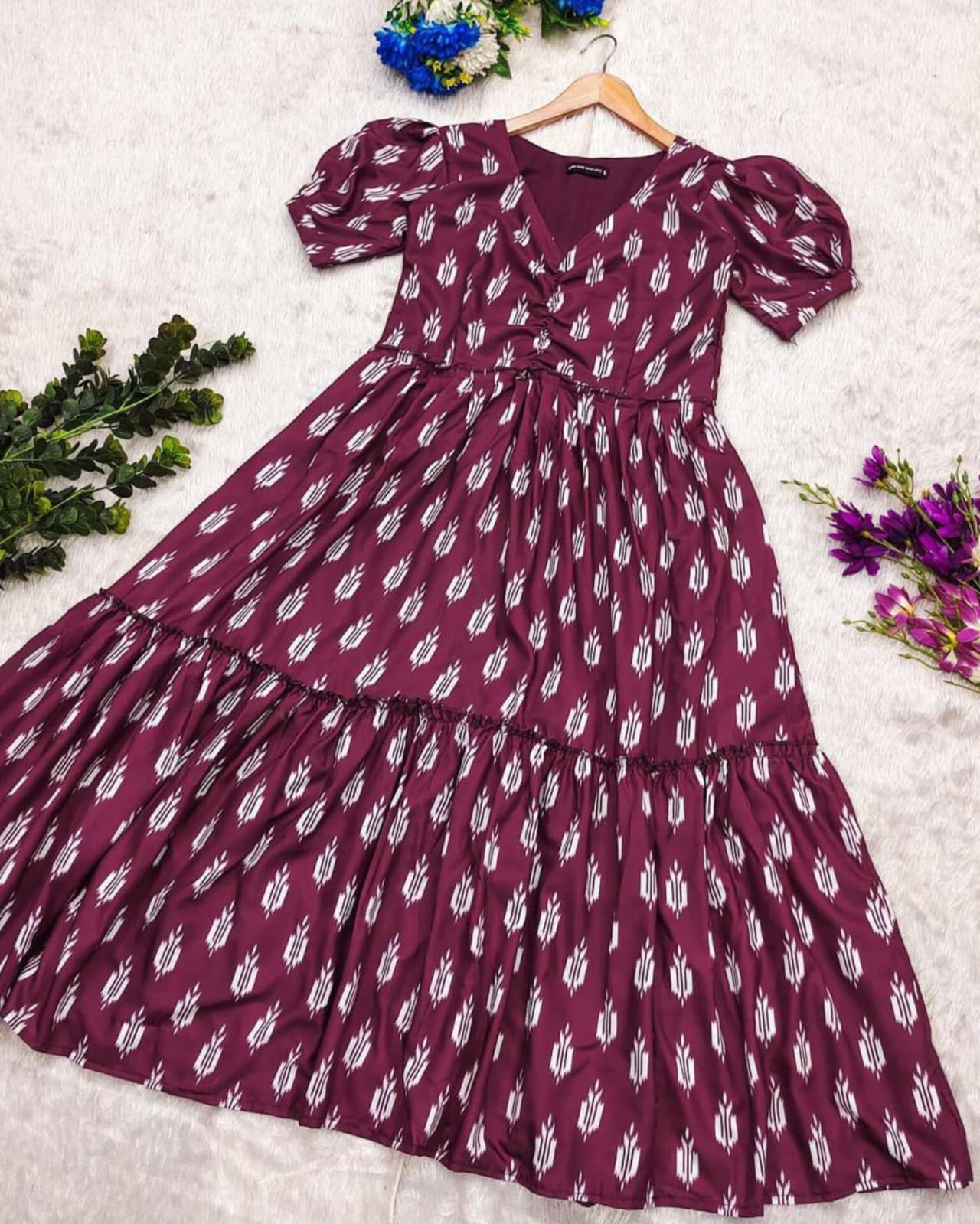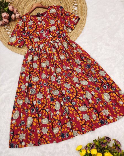 Unveil your inner elegance with the Maroon Muse Maxi, a timeless piece crafted in soft, breathable cotton with graceful Ikat-inspired prints. The deep maroon hue radiates sophistication, making it a perfect choice for casual days, festive gatherings, or elegant evenings.