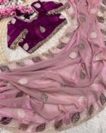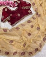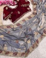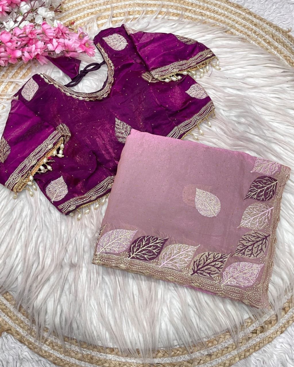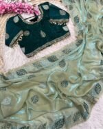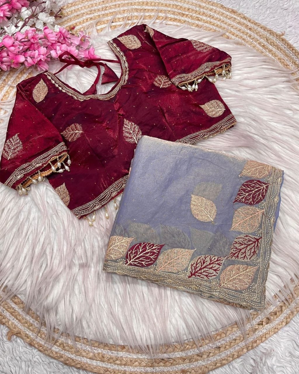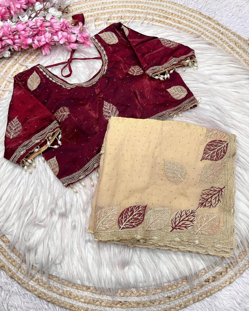 Enhance your festive elegance with the Royal Leaf Saree, crafted in luxurious Fendy Satin fabric for a rich shine and smooth drape.