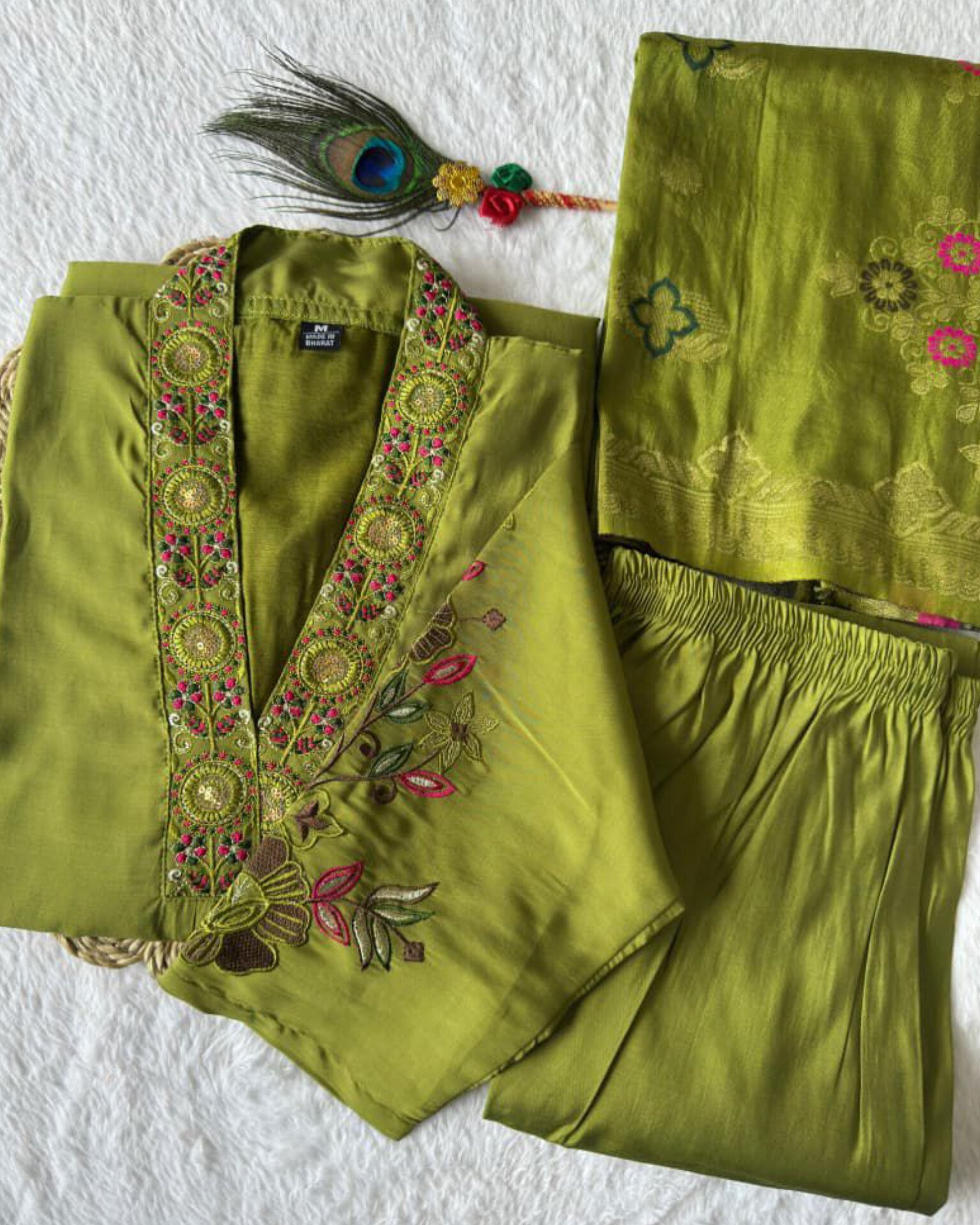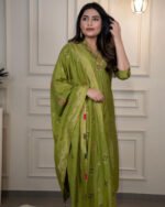 Step into timeless elegance with the Aira Mehndi Grace Set, a beautifully crafted ethnic ensemble designed to bring out your festive glow. Made from premium fabrics with delicate embroidery, this set blends traditional charm with modern sophistication.