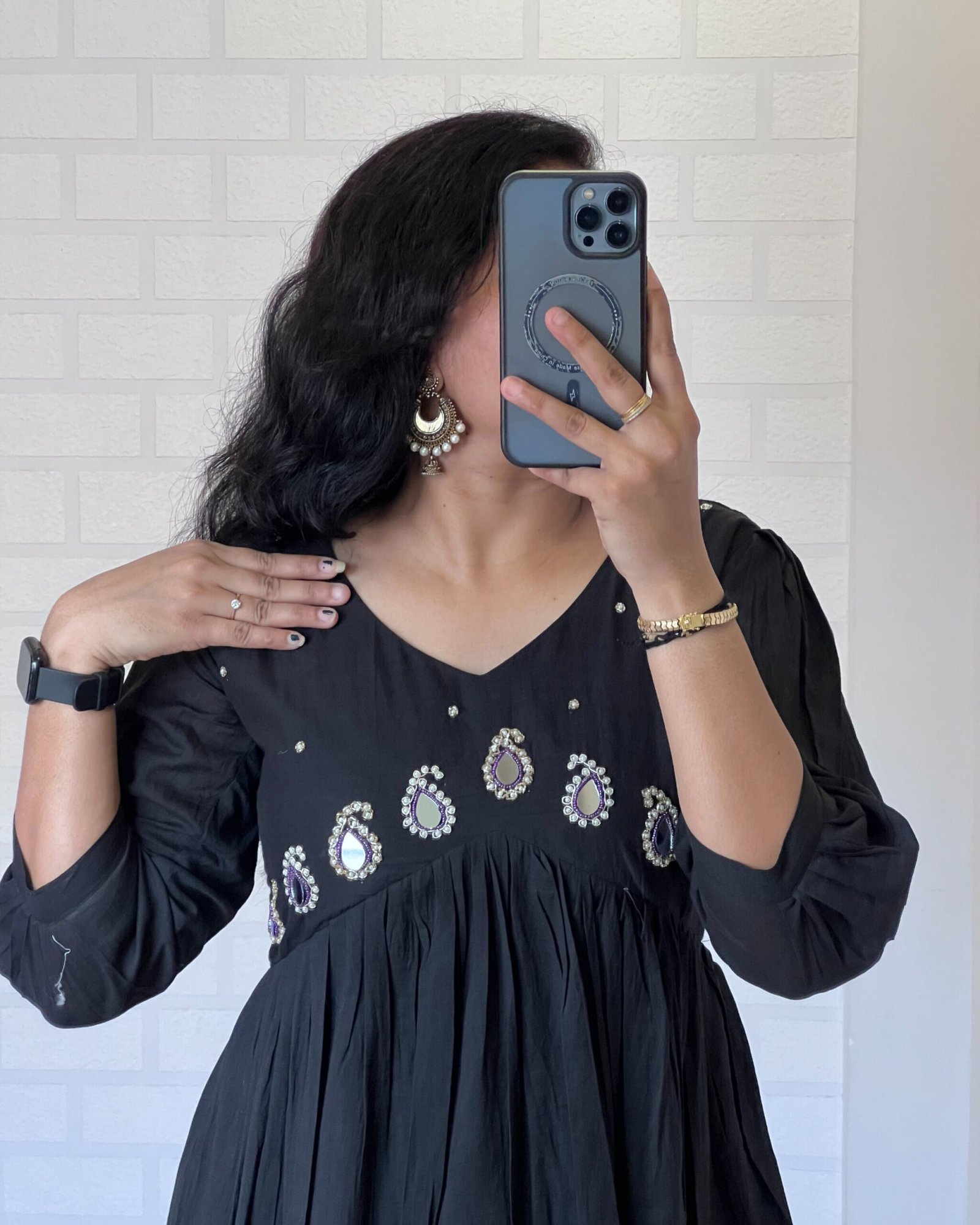Work: Handcrafted Maggam (Khatli) Work with Real Mirrors
