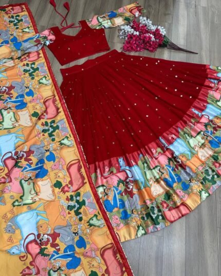 Lehenga: Rangoli Silk • Maggum Sequence Work • 4 Mtr Flair • Fully Stitched (Free Size up to 44)