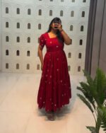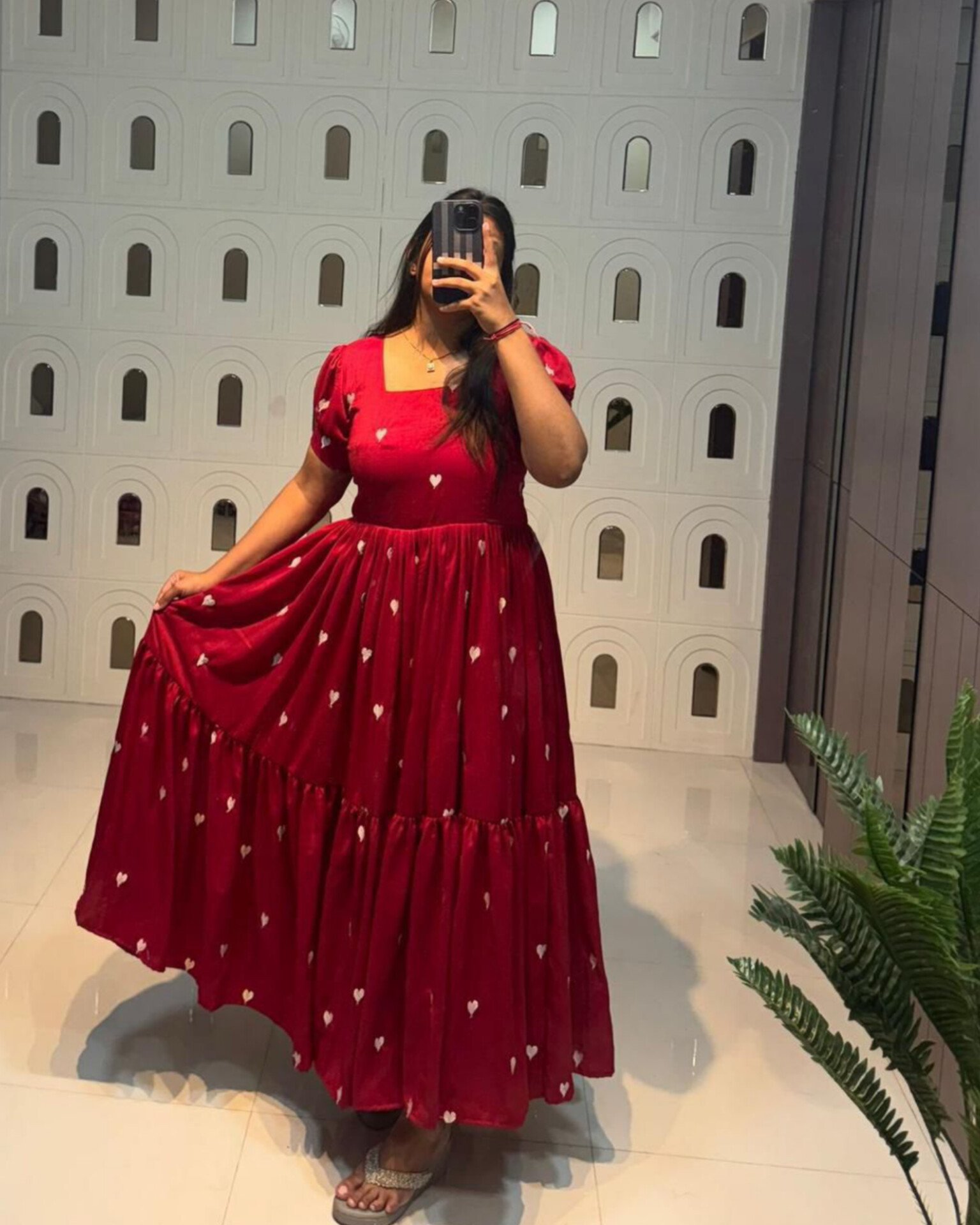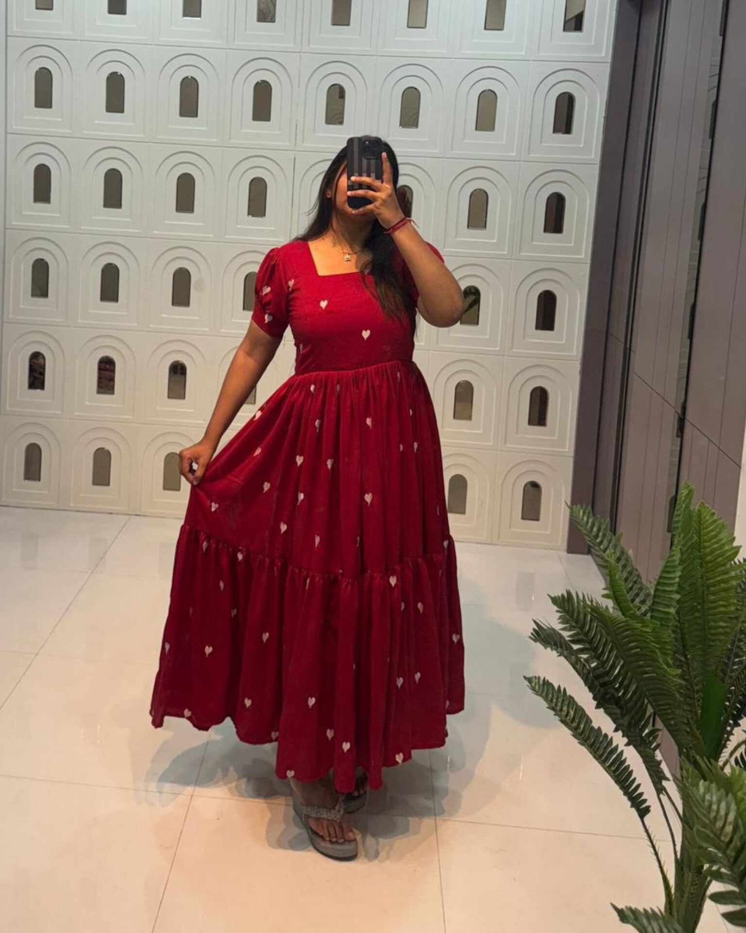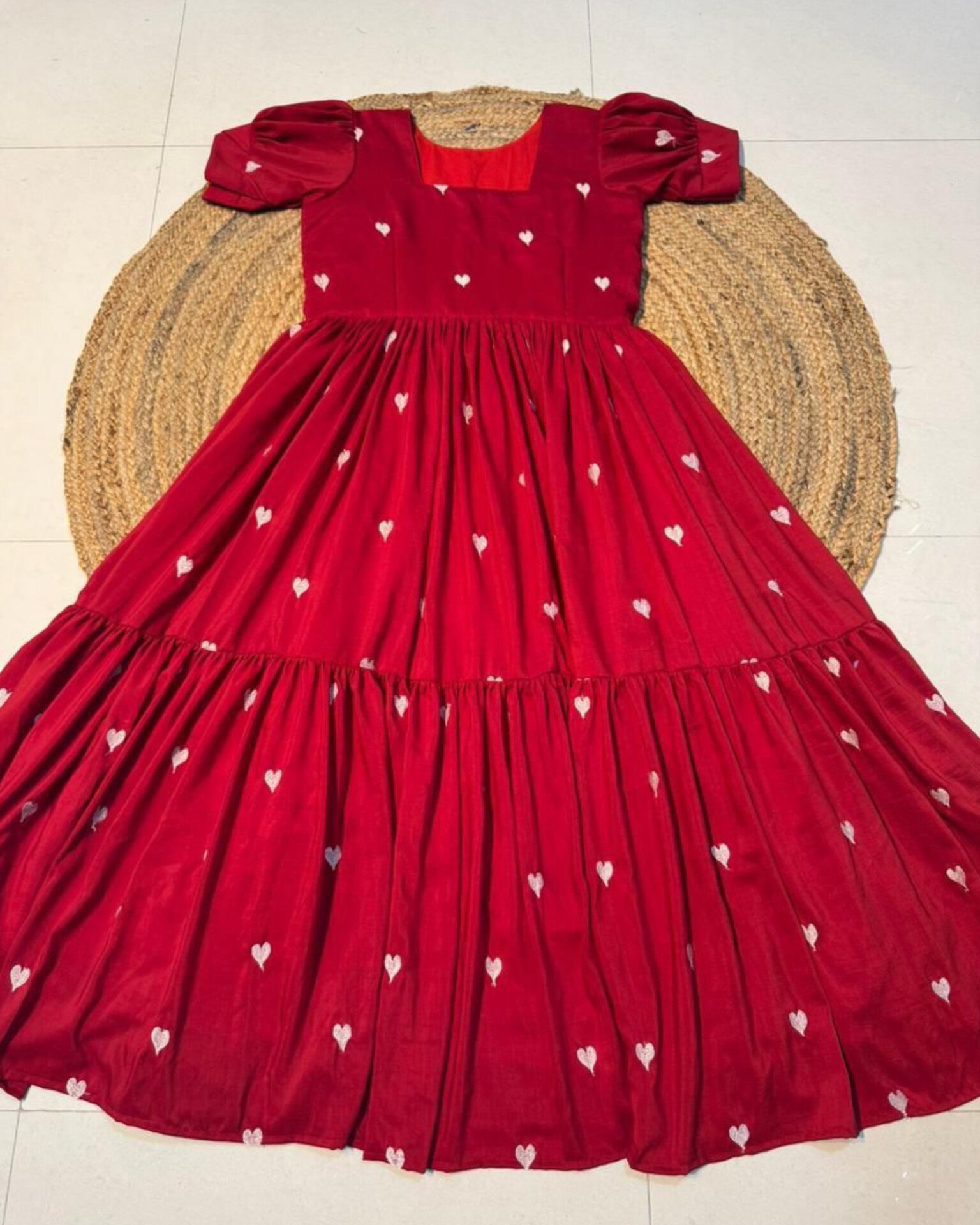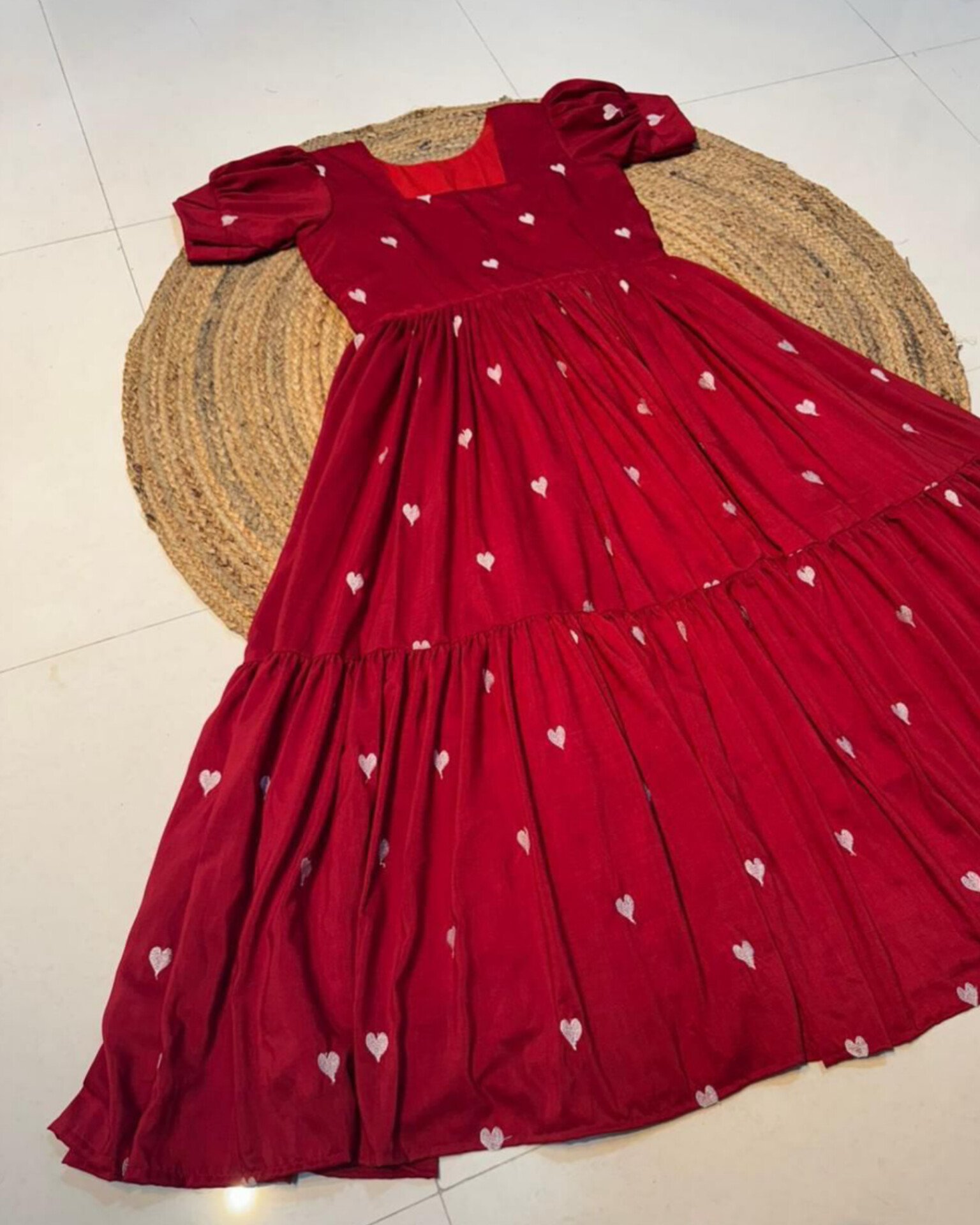 Celebrate love and festive charm with the Cupid Red Maxi, a beautiful blend of comfort and style. Designed in a rich red hue with delicate white heart embroidery all over, this maxi is perfect for Christmas celebrations, Valentine’s Day, and special moments.