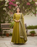 Home Gown with Dupatta Olive Opulence Anarkali🪻
