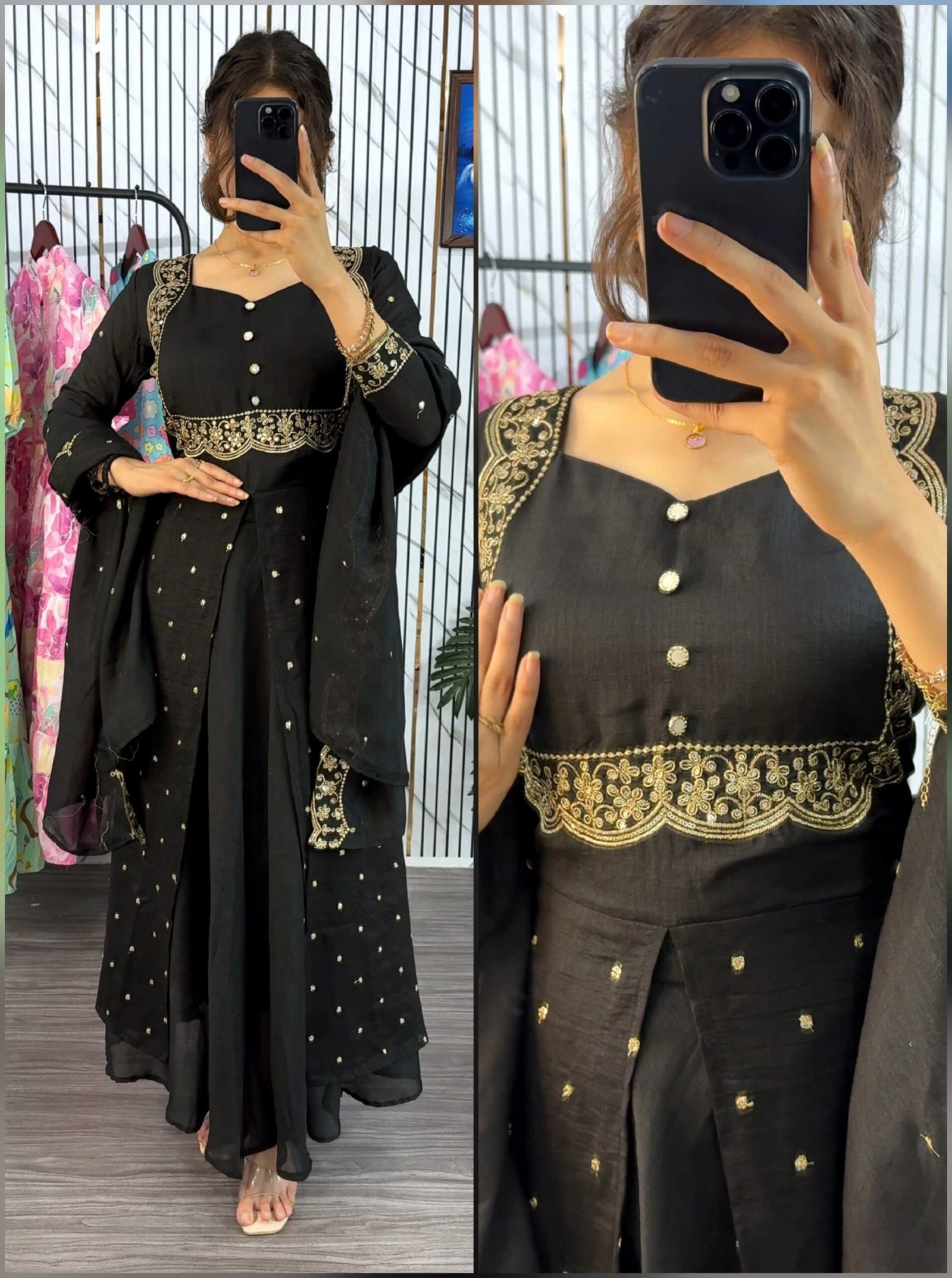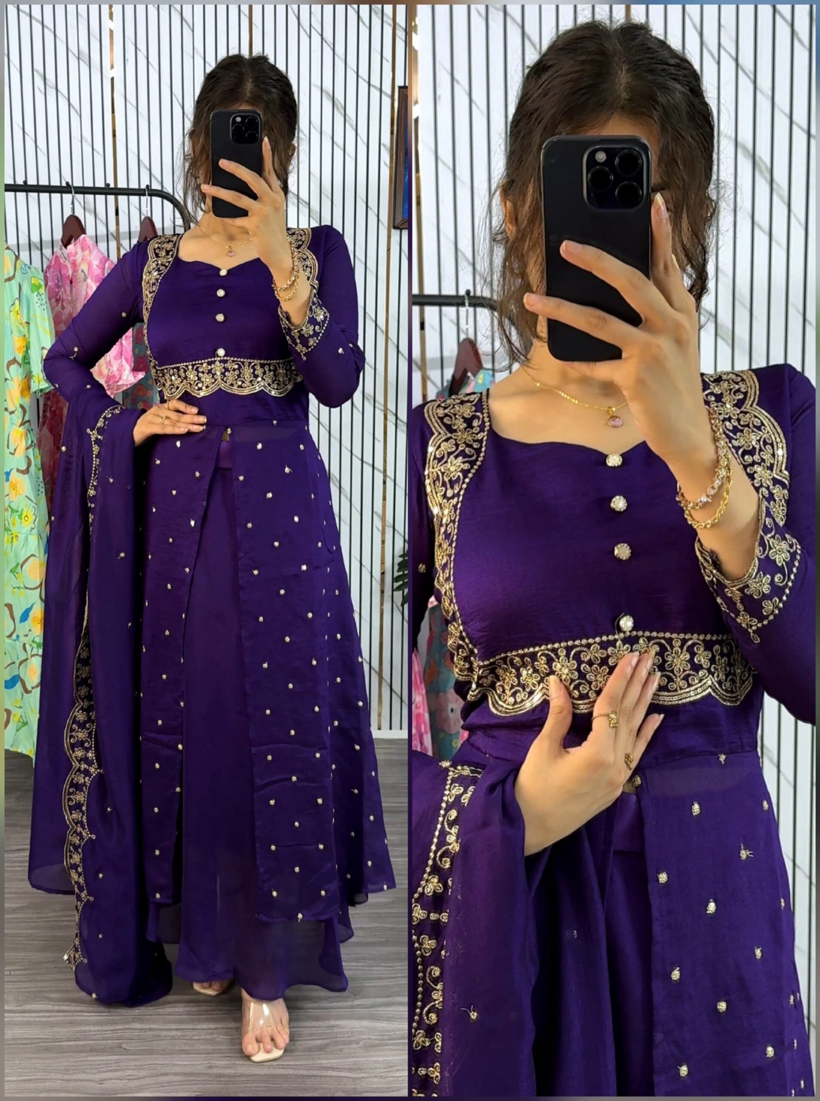 Turn heads at any celebration with our Stunning Cape Top Set, featuring a graceful cape-style top paired with a flowing skirt and dupatta. Designed to bring out your inner charm, this outfit blends traditional elegance with modern flair, making it perfect for weddings, festive occasions, or evening parties. 💫