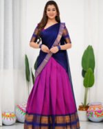 Crafted with love and adorned with heritage, this Kanjivaram silk lehenga embodies the grace and cultural richness of South Indian tradition.